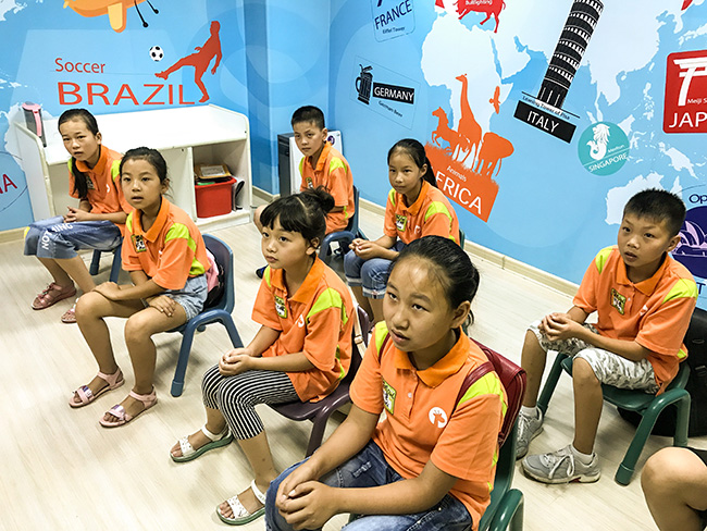 On July 30th, 2017, eight excellent students Fu Mengjiao, Hua Lei, Sun Hui, Wu Sixuan, Wu Yueyang, Zhang Ting,Zhang Zhihao and Zhao Yushu from Madao primary school Liuba county, Shaanxi province arrived in Shanghai. After a short rest, they attended a warm welcome party prepared by the teachers of Giraffe English Training Center and introduced themselves one by one. Finally, the children were taken to visit the school's individual themed classrooms with childlike playrooms and public areas. The children were all looking forward to the learning life.