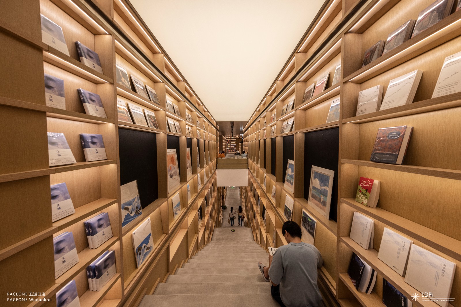 At the beginning of this project, the design team made site surveys of Beijing bookstores. In the schematic design, LDPi gave the positioning of the PAGE ONE Beijing Wudaokou store to be quiet but lively and welcoming. Taking advantage of the clean interior ceiling design LDPi chose to reduce the number of down lights in the ceiling to keep a clean space to build up a peaceful enjoyment for readers.
