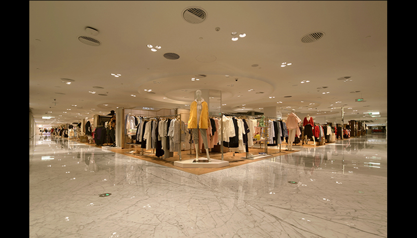 照明设计范围:室内调光:B1,4F(部分)/ 室内照明设计:B1 SKP SELECT和时尚街,1F,2F(包括美国Saks Fifth Avenue),3F (包括SPA), 4F RENDEZ-VOUS,5F(Home Select, 地中海餐厅 Cousteau,玩具区,卡务中心和母婴室),6F(包括北京厨房餐厅 The Beijing Kitchen)
